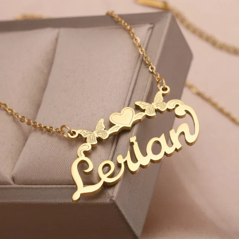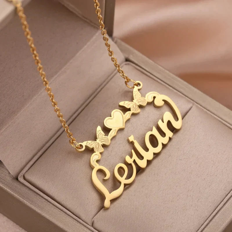Personalised Single Name Necklace – Ribbon, Butterflies & Hearts Custom For Her Cute Unique Jewellery Gift.